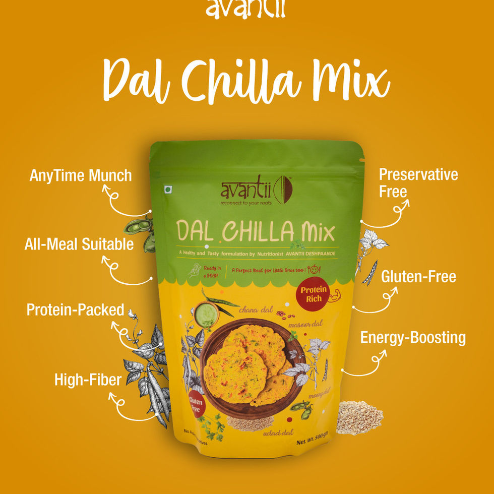Experience the wholesome goodness of Avanti Deshpande’s nutritional range with our Dal Chilla Mix Packs and Multi Millet Atta Packs. Each Dal Chilla Mix pack (500g) combines the nutrient-rich power of various dals, offering a perfect blend for protein-packed healthy meals. Complement this with our Multi Millet Atta Packs (2*500g), which bring together the goodness of multiple millets, ensuring high fiber and rich nutrients for a balanced diet. As a Nutritional Wellness Consultant, Avanti ensures that each product supports your wellness journey while aligning with our core values of health and quality. Enhance your meals with these thoughtfully crafted mixes, designed to bring you both convenience and nutritional excellence.